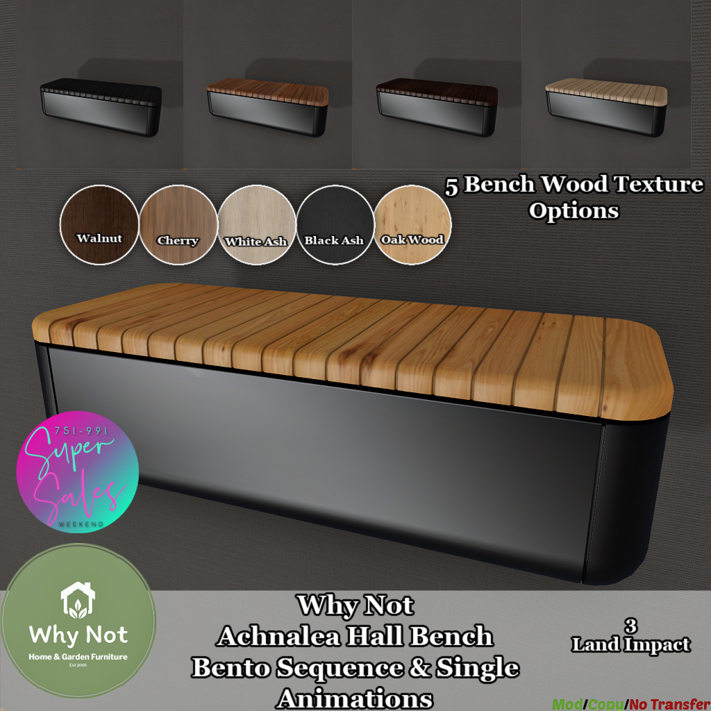 The Super Sales Weekend! One stop shopping at 75L - 99L all at the Why Not Shopping District! Gallery on Mischief Menagerie website here and find us on SUGARSL! Grab the notecard in world for their mainstore landmarks for other amazing deals!